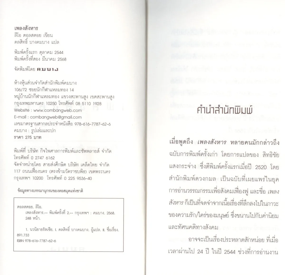 สำนักพิมพ์คมบาง พิมพ์ครั้งที่สอง มีนาคม 2568