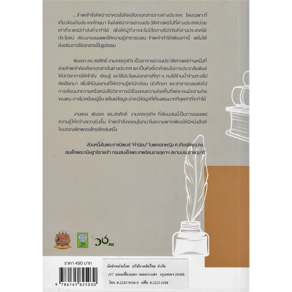 พันเอก ดร.สรศักดิ์ งามขจรกุลกิจ เป็นอาจารย์กองประวัติศาสตร์ท่านหนึ่งที่ช่วยข้าพเจ้าคัดเลือกเอกสารในต่างประเทศ และเป็นหัวเรี่ยวหัวแรงในการประชาสัมพันธ์ให้นักวิชาการได้เข้าถึง เรียนรู้และใช้ประโยชน์เอกสารที่ทุกๆ คนได้ข้ามน้ำข้ามทะเลไปคัดเลือกมาเพื่อให้มีผลงานที่ให้ความรู้แก่นักเรียน นักศึกษาและสาธารณชน ต่อไป การเขียนบทความหรือหนังสือวิชาการมีเรื่องของความคิดเห็นที่แต่ละคนมีความคิดของตน อาจไม่เหมือนผู้อื่นแต่ในแง่ข้อมูล น่าจะมีข้อมูลที่เที่ยงตรงมากที่สุดเท่าที่จะทำได้งานของพันเอก ดร.สรศักดิ์ งามขจรกุลกิจ ที่เขียนเล่มนี้เป็นการเผยแพร่ความรู้ให้กว้างขวางยิ่งขึ้น ข้าพเจ้าจึงขออนุโมทนาในความพากเพียรให้มีหนังสือดีในบรรณพิภพของไทยอีกเล่มหนึ่ง”