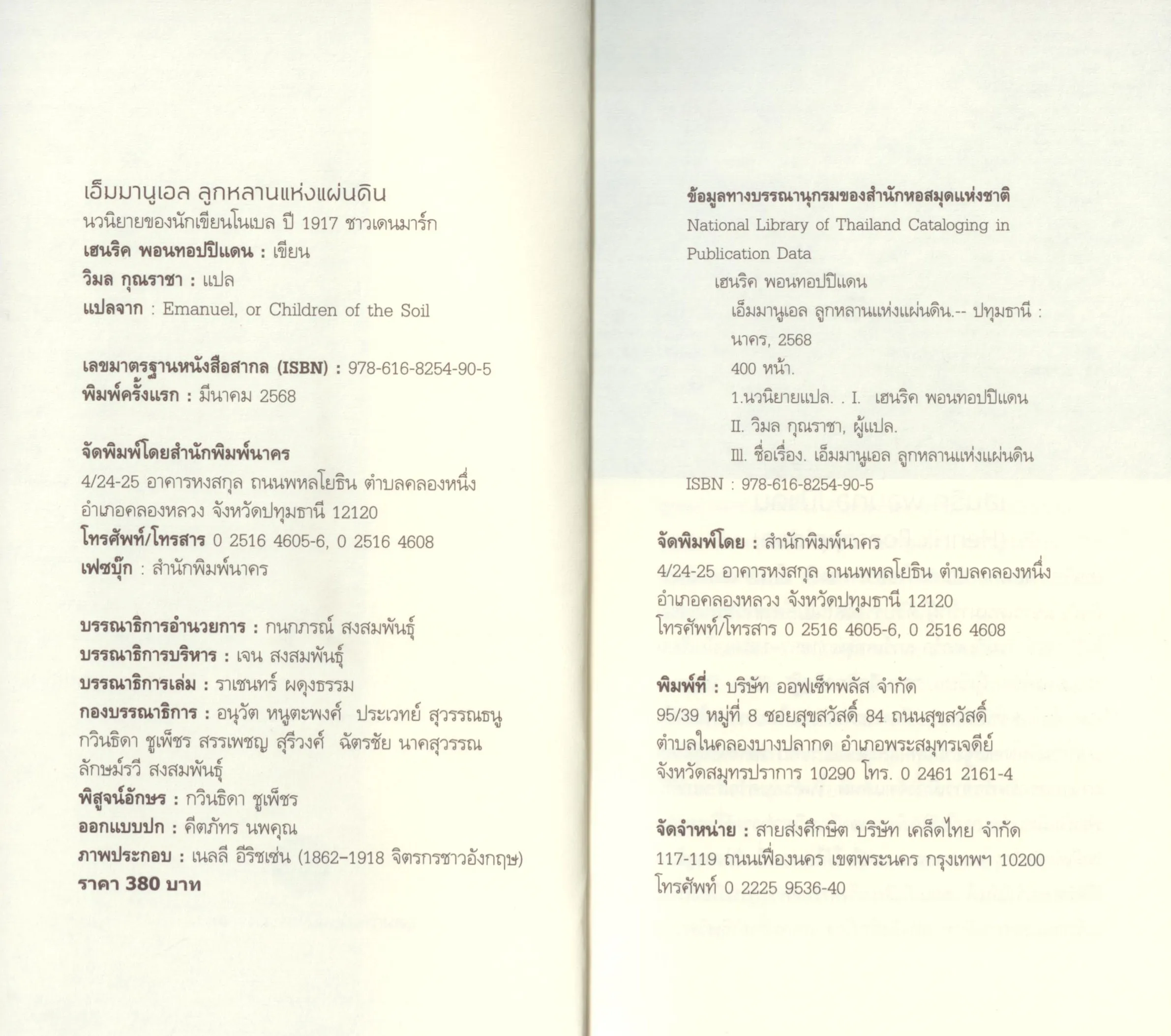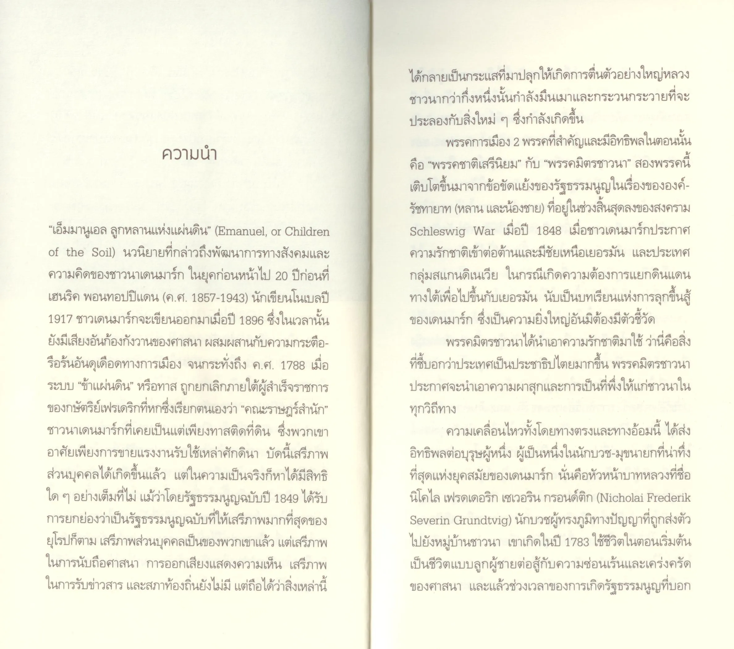 “เอ็มมานูเอล ลูกหลานแห่งแผ่นดิน” (Emanuel, or Children of the Soil) นวนิยายเพื่อคนหนุ่มสาวของ “เฮนริค พอนทอปปิแดน” (Henrik Pontoppidan, 1857-1943) นักเขียนรางวัลโนเบล ปี ค.ศ.1917 ชาวสวีเดน