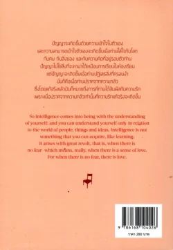 ปัญญาจะเกิดขึ้นด้วยความเข้าใจในตัวเองและความสามารถเข้าใจตัวเองจะเกิดขึ้นเมื่อท่านใส่ใจกับโลกกับคน กับสิ่งของ และกับความคิดที่อยู่รอบตัวท่าน ปัญญาไม่ใช่สิ่งที่จะหามาได้เหมือนการเรียนในห้องเรียนแต่ปัญญาจะเกิดขึ้นเมื่อท่านปฏิเสธสิ่งที่ครอบงำ นั่นก็คือเมื่อท่านปราศจากความกลัวซึ่งโดยแท้จริงแล้วมันก็หมายถึงการที่ท่านได้สัมผัสกับความรัก เพราะเมื่อปราศจากความกลัวเท่านั้นที่ความรักแท้จริงจะเกิดขึ้น