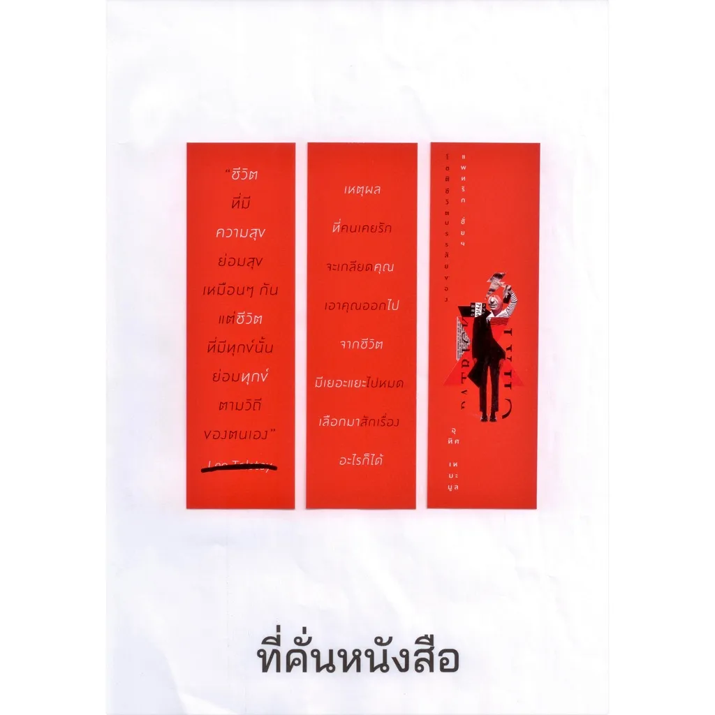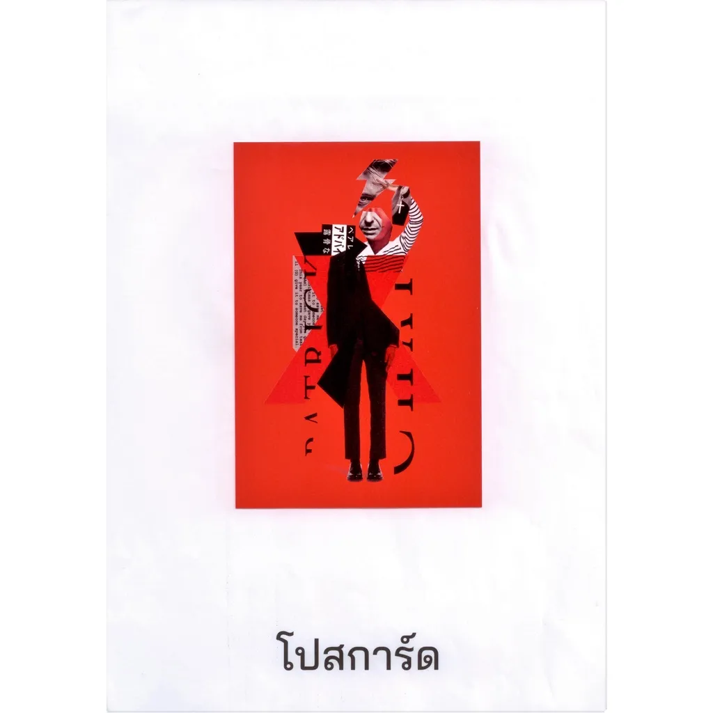 หนังสือ โชติชีวิตบรรลัยของแพทริก ชั่ยฯ มาพร้อมที่คั่น 3 ชิ้น และโปสการ์ด 1 ชิ้น