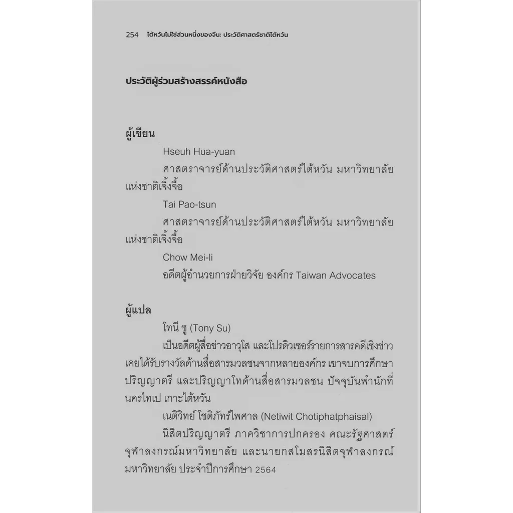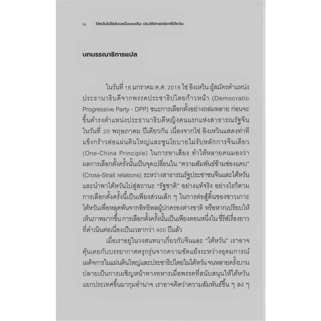 หนังสือ “ไต้หวันไม่ใช่ส่วนหนึ่งของจีน : ประวัติศาสตร์ชาติไต้หวัน” เล่มนี้จะพาย้อนกลับไปดูความสัมพันธ์และปฏิสัมพันธ์ระหว่างดินแดนที่เรียกว่า “จีน” กับเกาะไต้หวัน ว่าเป็นมาอย่างไร ชาวจีนกับชาวไต้หวันเป็นพี่น้องเชื้อชาติเดียวกันจริงหรือไม่ และไต้หวันเป็นส่วนหนึ่งของ “จีน” จริงหรือเปล่า อีกทั้งยังแสดงให้เห็นว่าผู้คนบนเกาะอันงดงามกลางมหาสมุทรแปซิฟิกแห่งนี้สร้าง “ความเป็นไต้หวัน” และ “สำนึกแบบไต้หวัน” ตั้งแต่อดีตจนถึงปัจจุบันอย่างไร