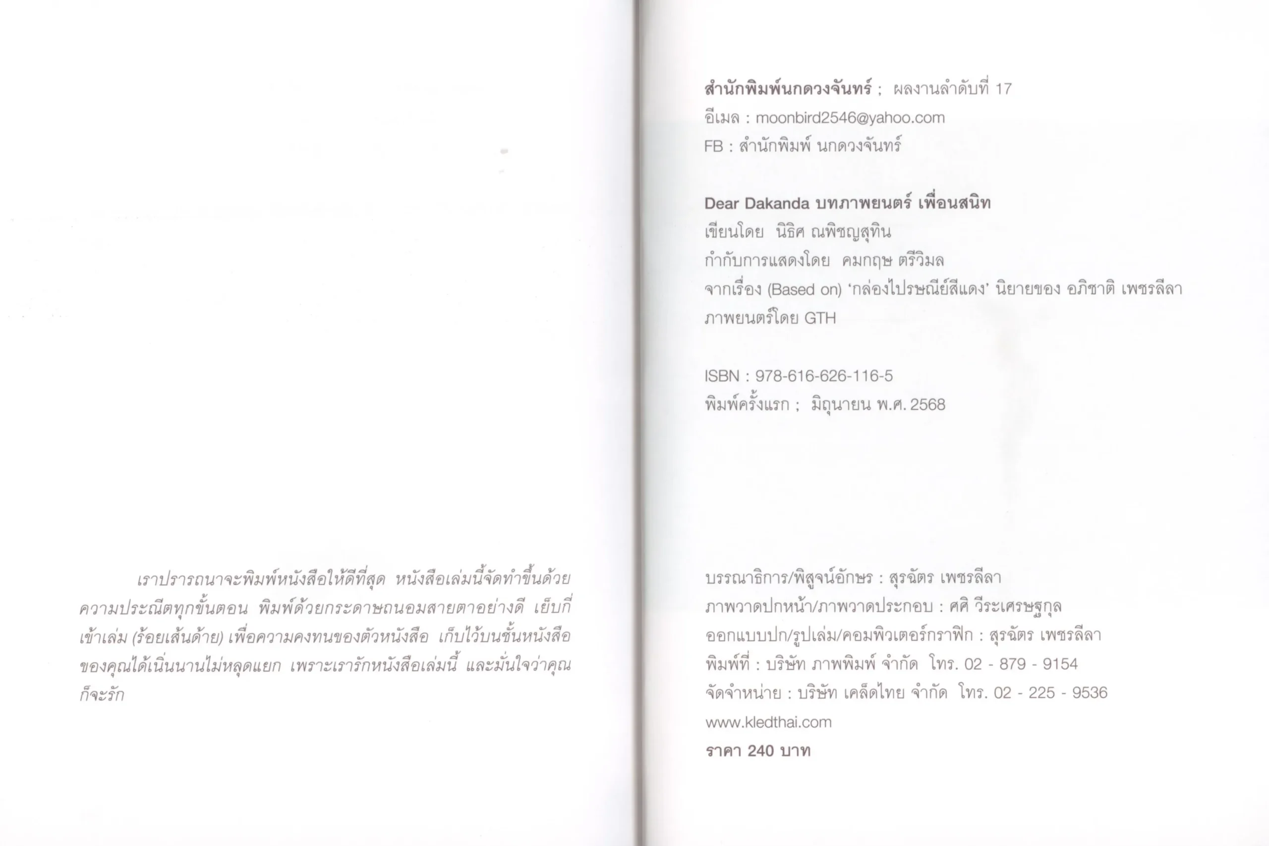 Dear Dakanda บทภาพยนตร์ เพื่อนสนิท โดย นิธิศ ณพิชญสุทิน