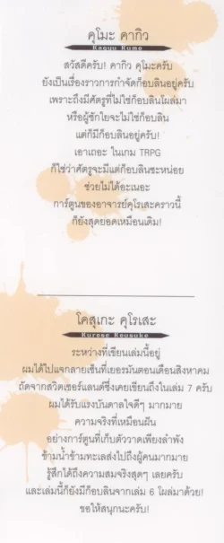 และก็ยังมีเรื่องสั้นที่เขียนโดย อ.คากิว คุโมะ ผู้เขียนนิยายรวมอยู่ในเล่มอีกด้วย!!