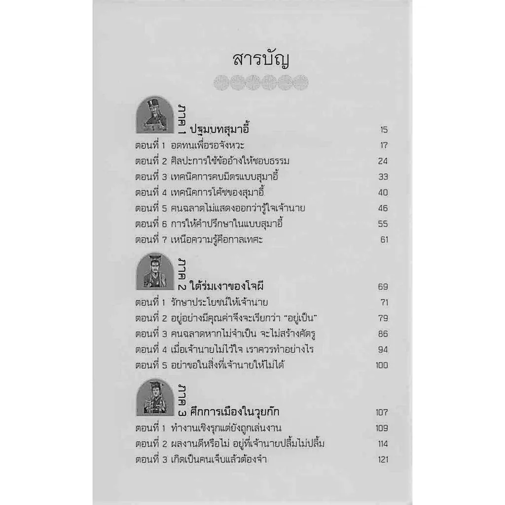 เนื้อหาภายในเล่ม ตัวผู้เขียนใช้วิธีเล่าโดยใช้หลัการและเหตุผลในการสังเคราะห์ความเป็นตัวตนของสุมาอี้ อีกทั้งยังดึงเอาแก่นแท้ของกรอบความคิดและสติปัญญา ตลอดจนความสามารถทางการบริหารการปกครอง ออกมาได้อย่างเป็นระบบเป็นแบบแผน อ่านแล้วเข้าใจง่าย แม้ไม่เคยอ่านสามก๊กมาก่อนก็อ่านได้