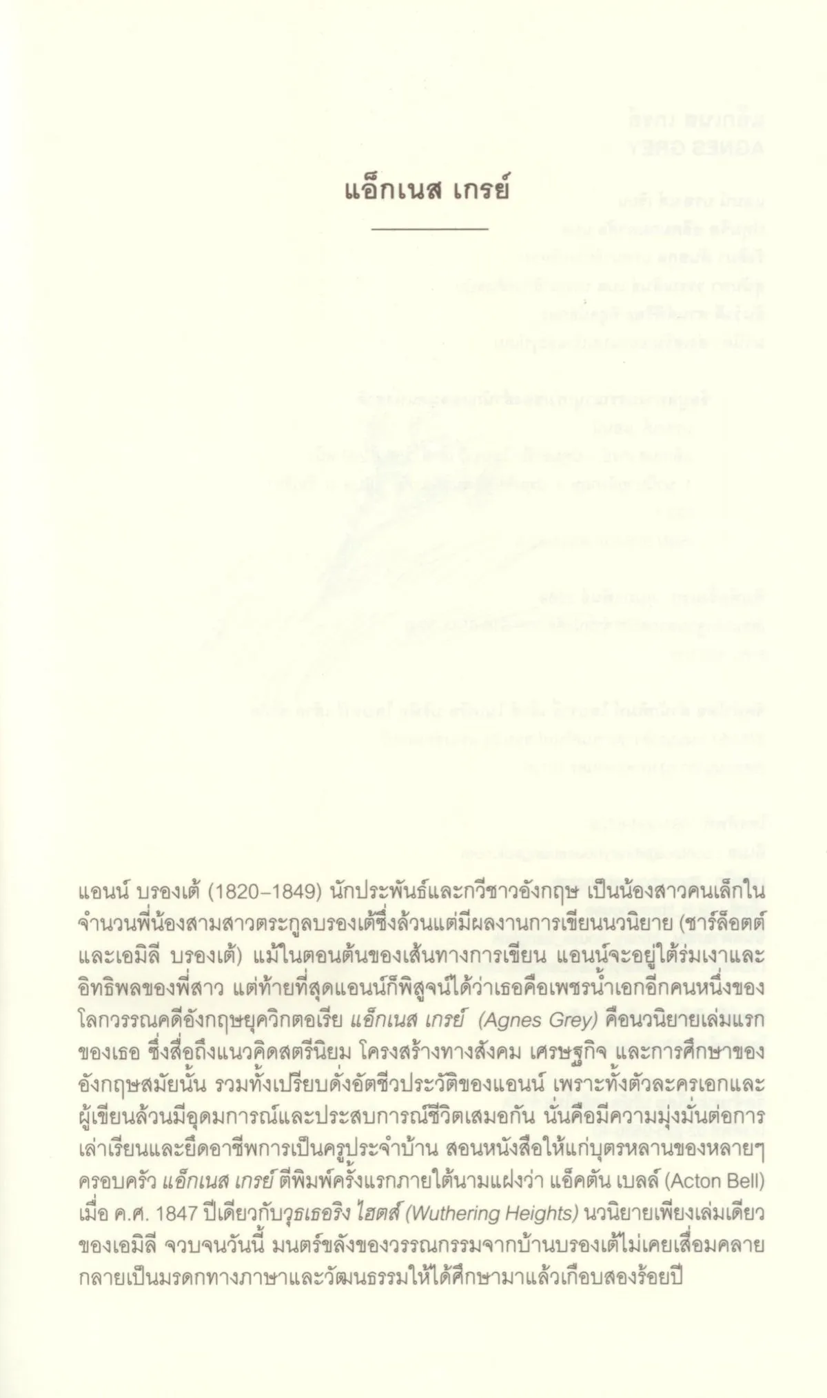 แอ็กเนส เกรย์ งานประพันธ์เล่มแรกของแอนน์ บรองเต้ น้องสาวคนสุดท้องของตระกูลบรองเต้