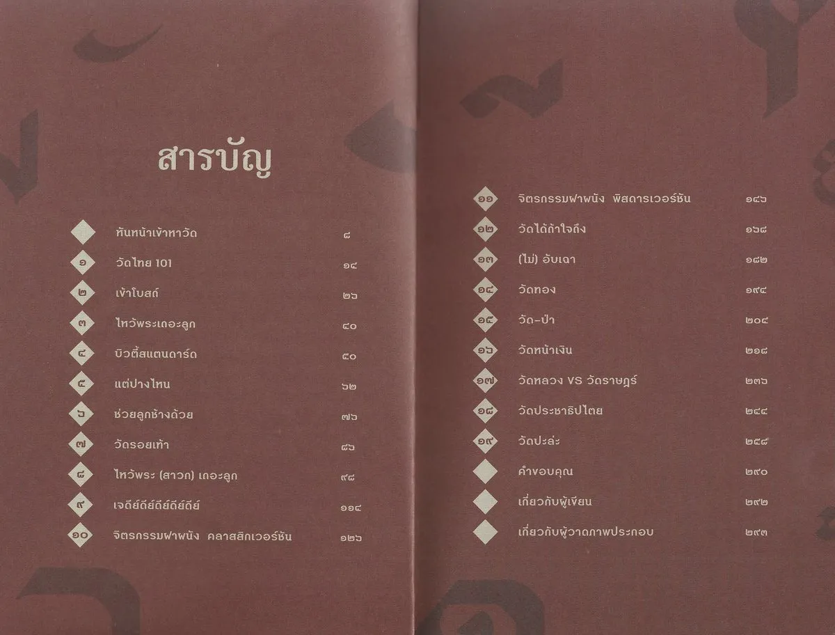 บางวัดเต็มไปด้วยงานช่างประณีตระดับประเทศ บางวัดเก็บซ่อนตำนานพื้นบ้านและประเพณีเฉพาะถิ่นเอาไว้ หรือบางองค์ประกอบในวัดก็ซ่อนร่องรอยทางประวัติศาสตร์และความคิดสร้างสรรค์ของช่างในแต่ละยุค