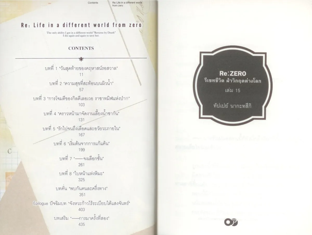 Re:ZERO รีเซทชีวิต ฝ่าวิกฤตต่างโลก เล่ม 15